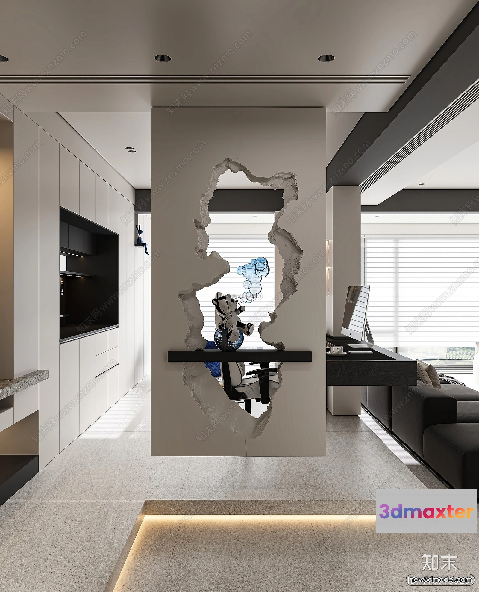 - Name: Minimalist Style Interior 3D Blocks – Living Room 3D Model – 140