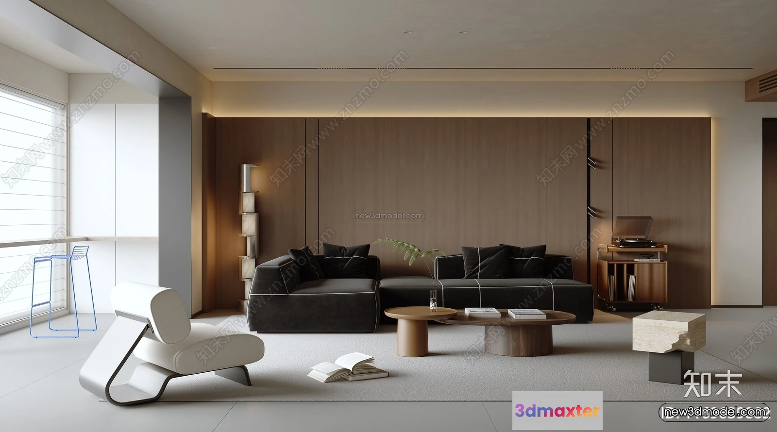 Minimalist Style Interior 3D Blocks – Living Room 3D Model – 142 – Living room 3D Model – VRAY
