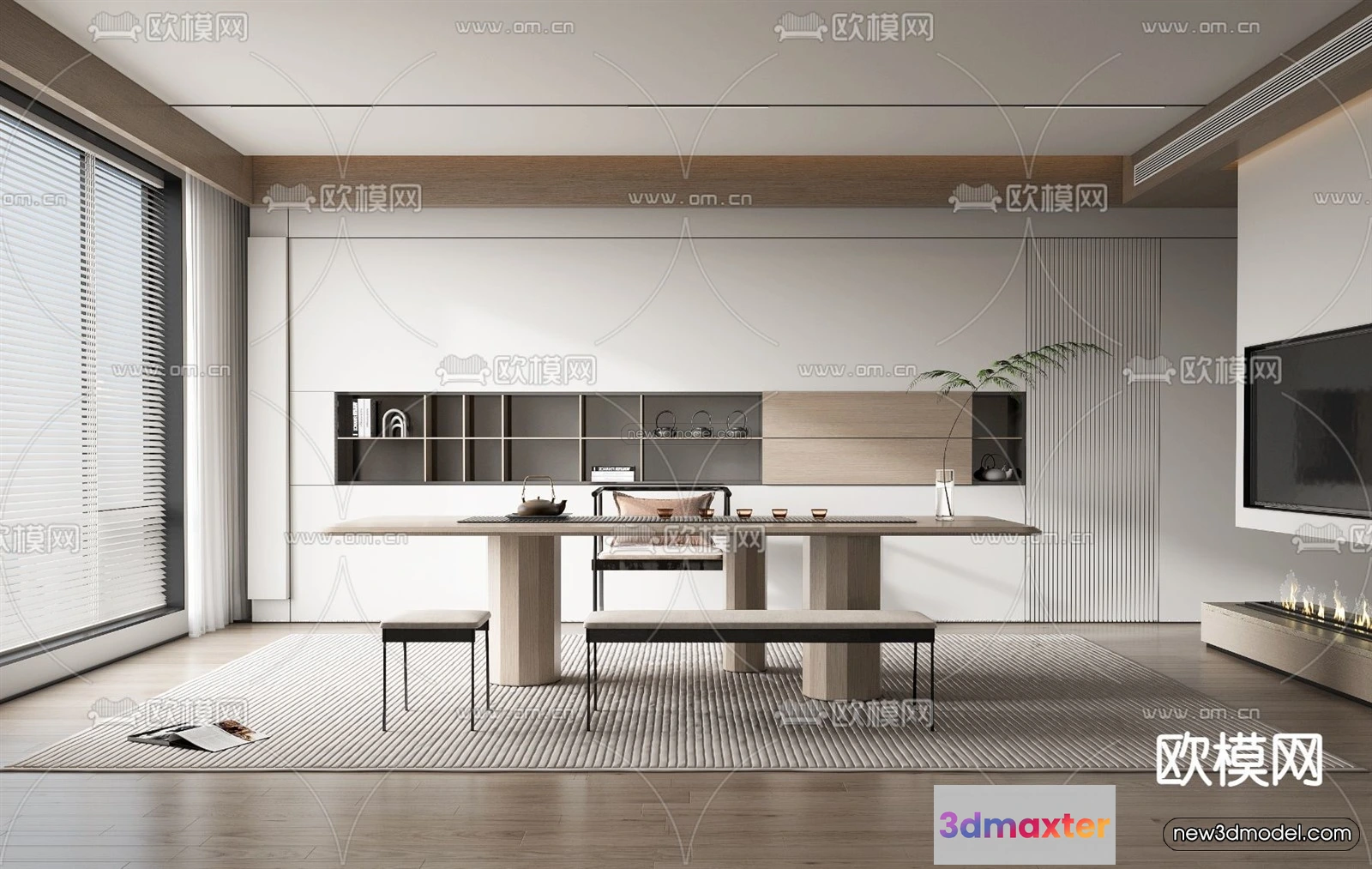 3D Models / 3D Scenes / Interior / Office Home / Minimalist Style Interior 3D Blocks – Study Room 3D Model – 258 3D Max