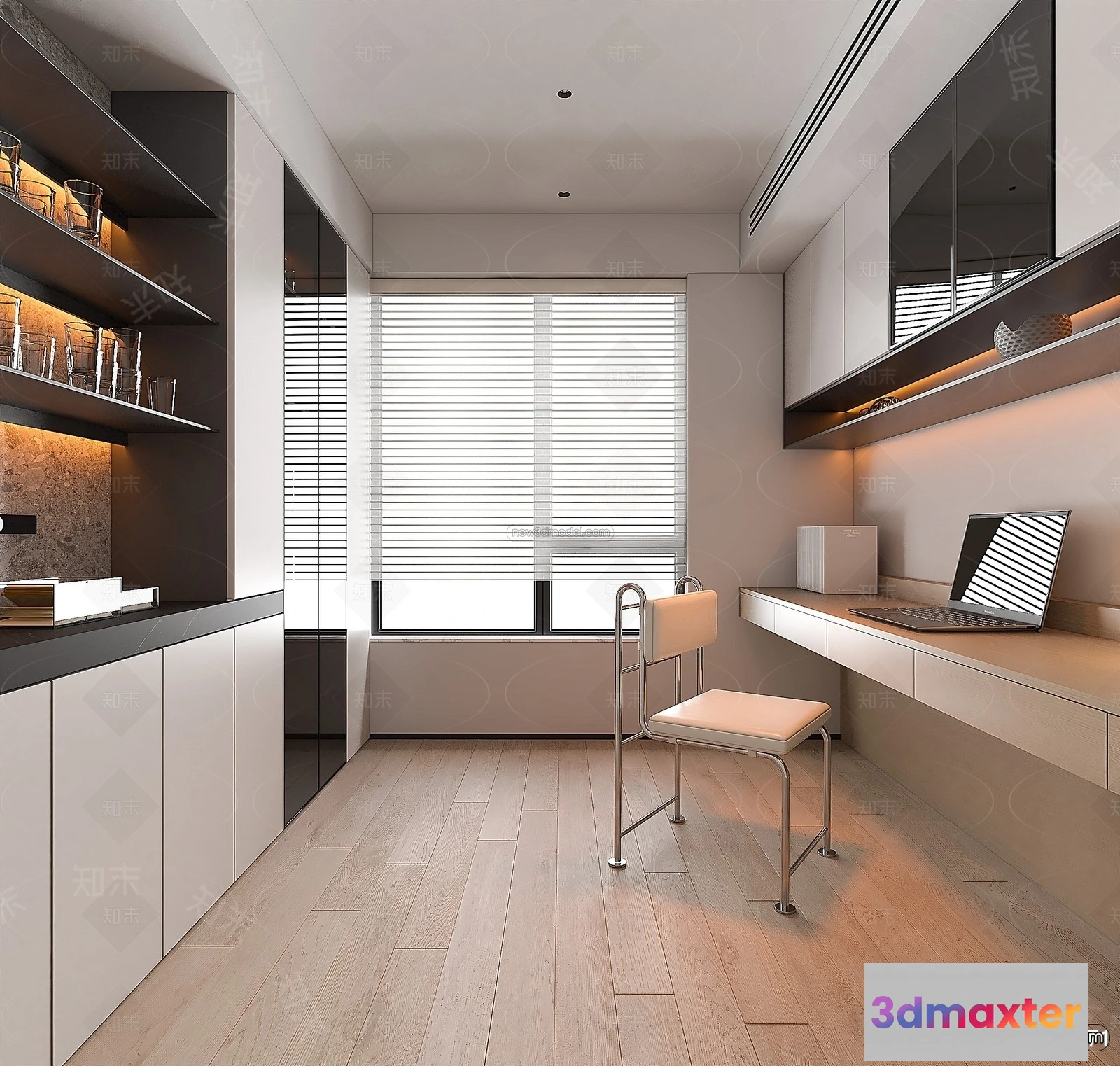 3D Models / 3D Scenes / Interior / Office Home / Minimalist Style Interior 3D Blocks – Study Room 3D Model – 261 3D Max