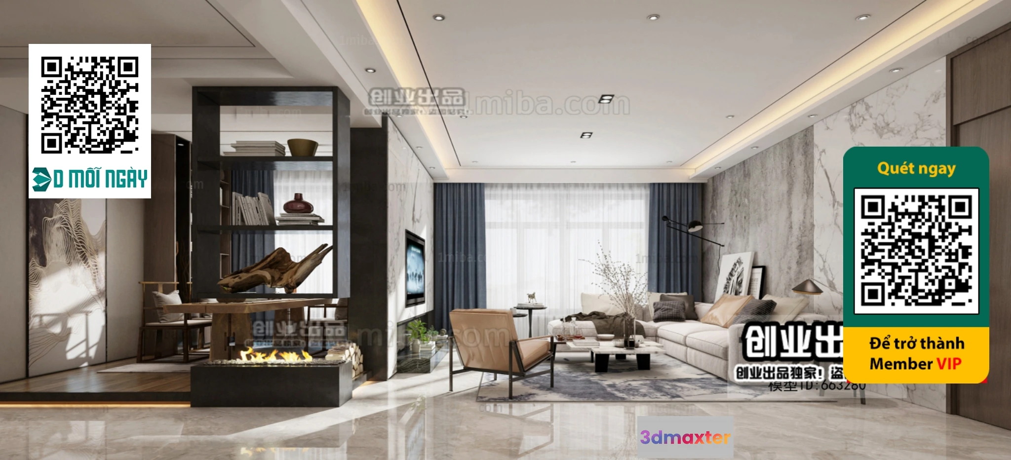 3D Models / 3D Scenes / Interior / MINIMALIST STYLE – VRAY / CORONA – 3D MODEL – 4411