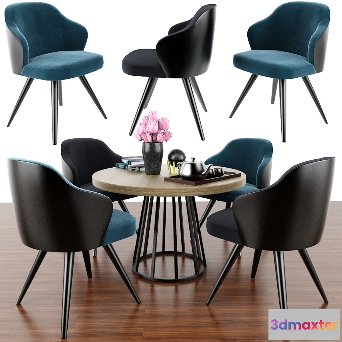 Minotti leslie dining steel Swivel Dining Set & Parquet