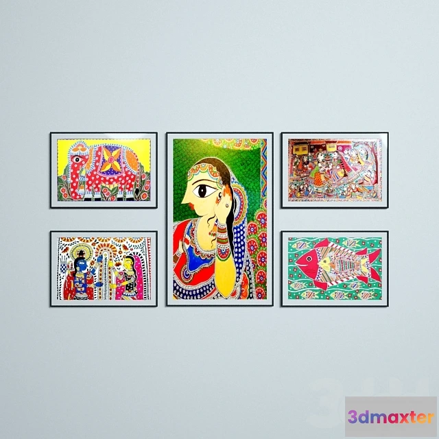 3D Models / Decoration / Other Decoration / Mithila Art 5 set painting – 220437