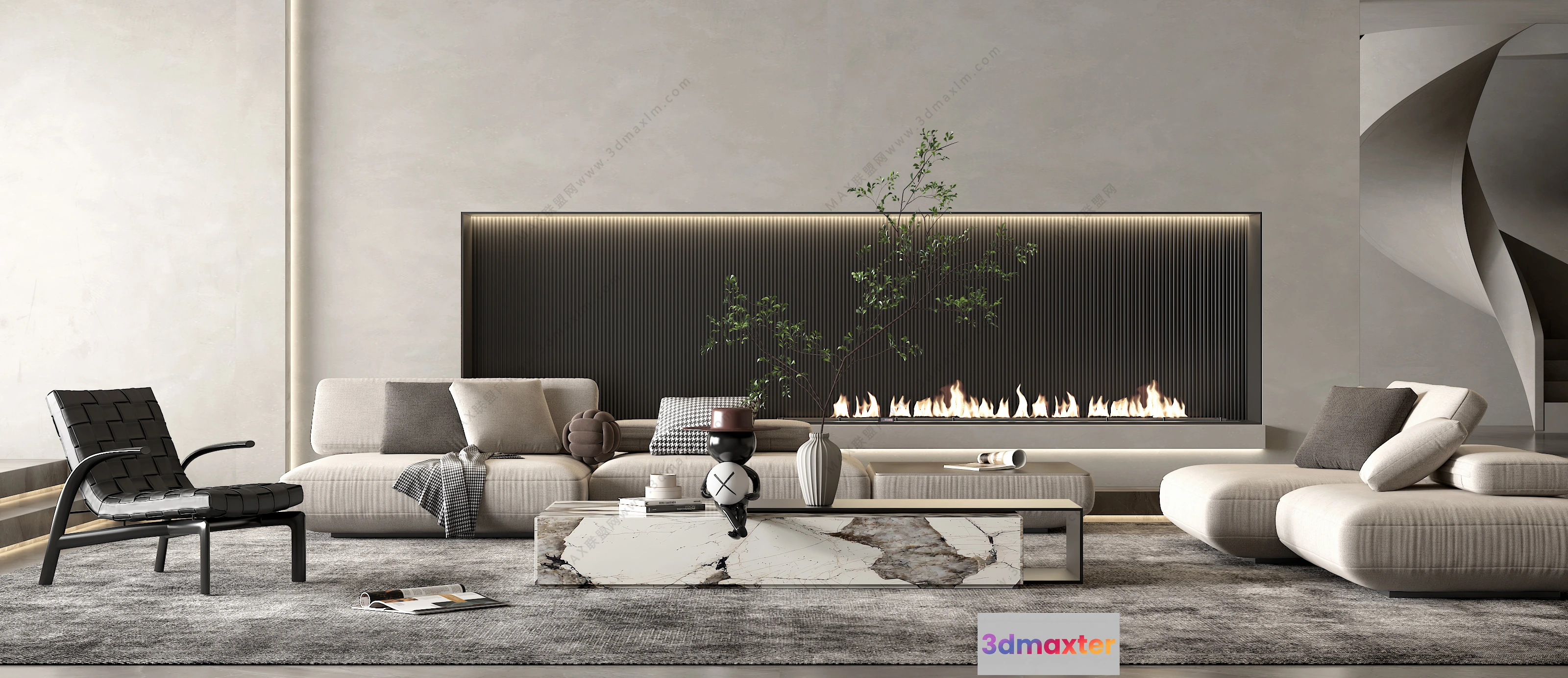 3D Models / 3D Scenes / Interior / Living Room / MODERN INTERIOR 3D SCENES – LIVING ROOM – 0024