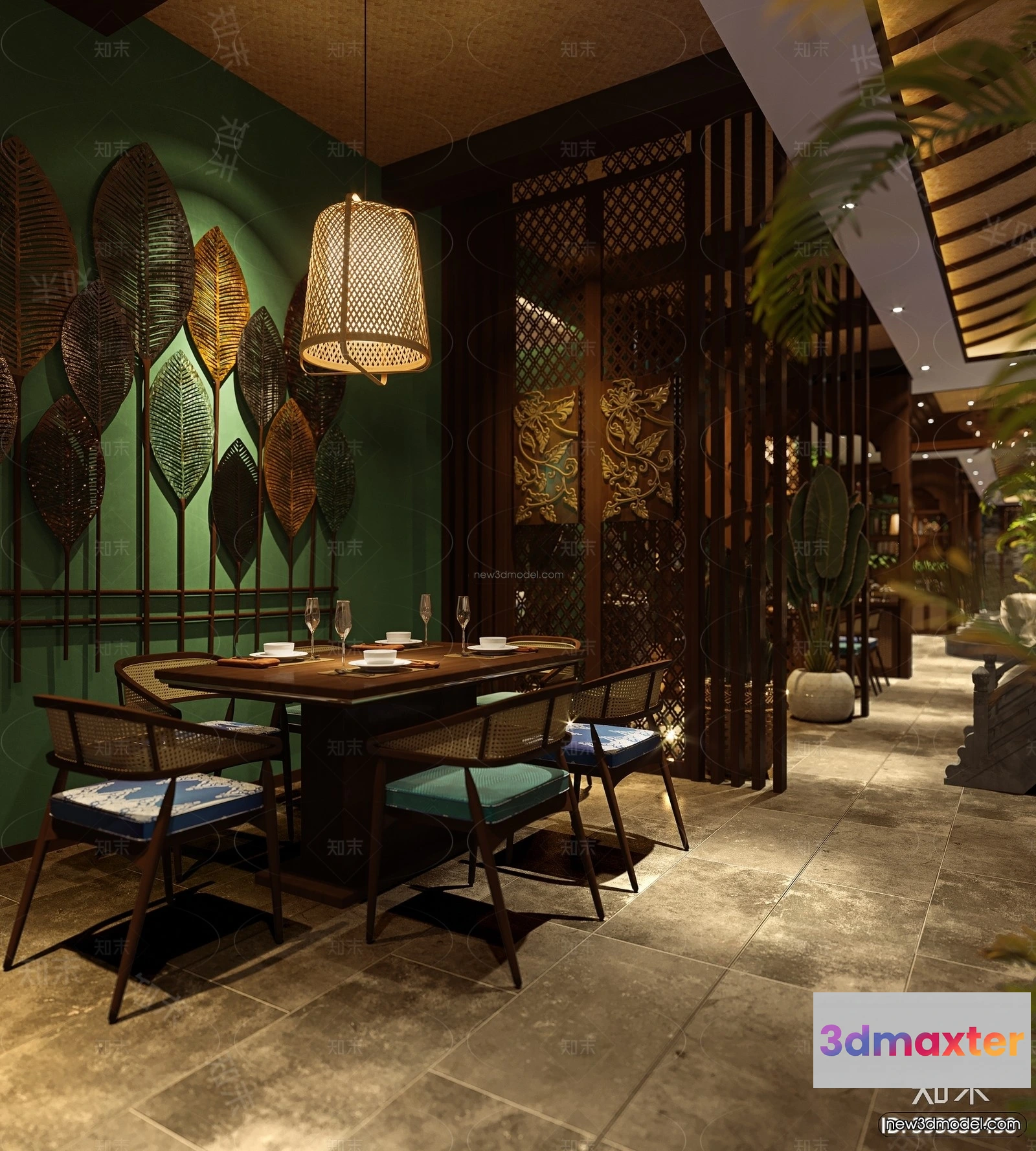3D Models / 3D Scenes / Interior / Commercial Spaces / Modern Style Interior 3D Blocks and 3D Models – Asian Restaurant 3D Scene – 1002 3D Max