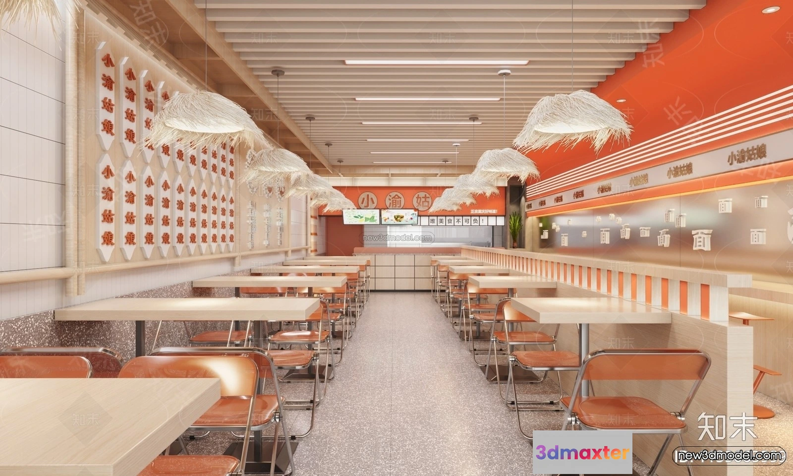 Modern Style Interior 3D Blocks and 3D Models – Asian Restaurant 3D Scene – 1007 – Restaurant 3D Model – CORONA