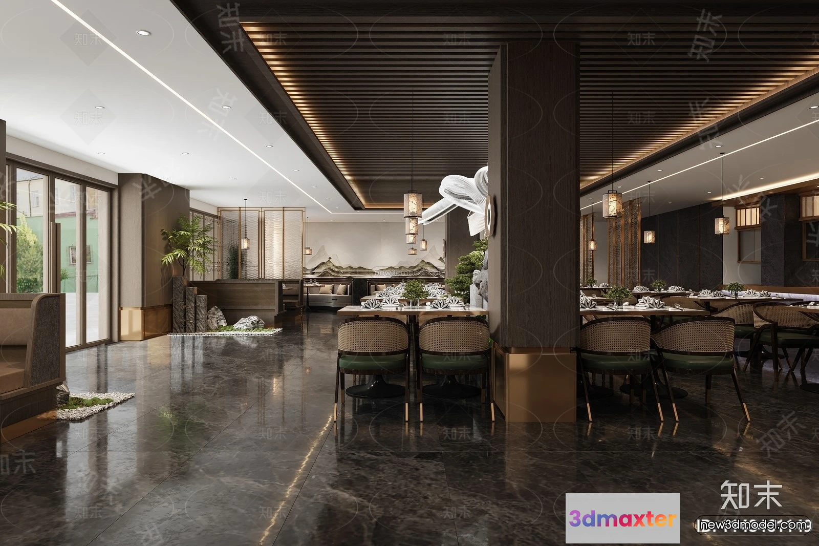 3D Models / 3D Scenes / Interior / Commercial Spaces / Modern Style Interior 3D Blocks and 3D Models – Asian Restaurant 3D Scene – 968 3D Max