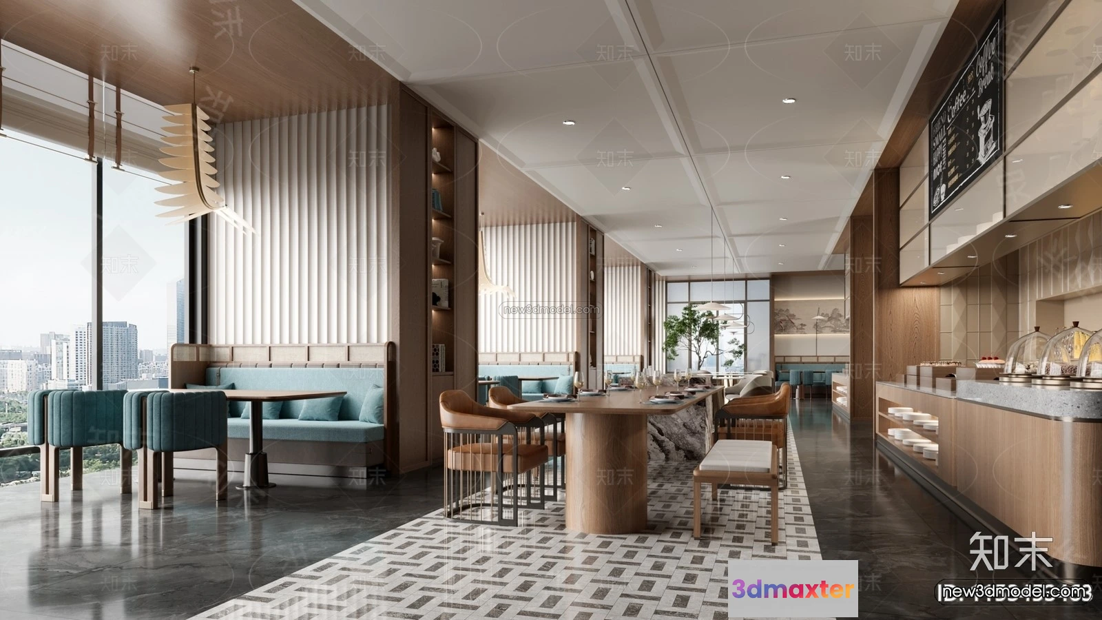 Modern Style Interior 3D Blocks and 3D Models – Asian Restaurant 3D Scene – 972 – Restaurant 3D Model – CORONA