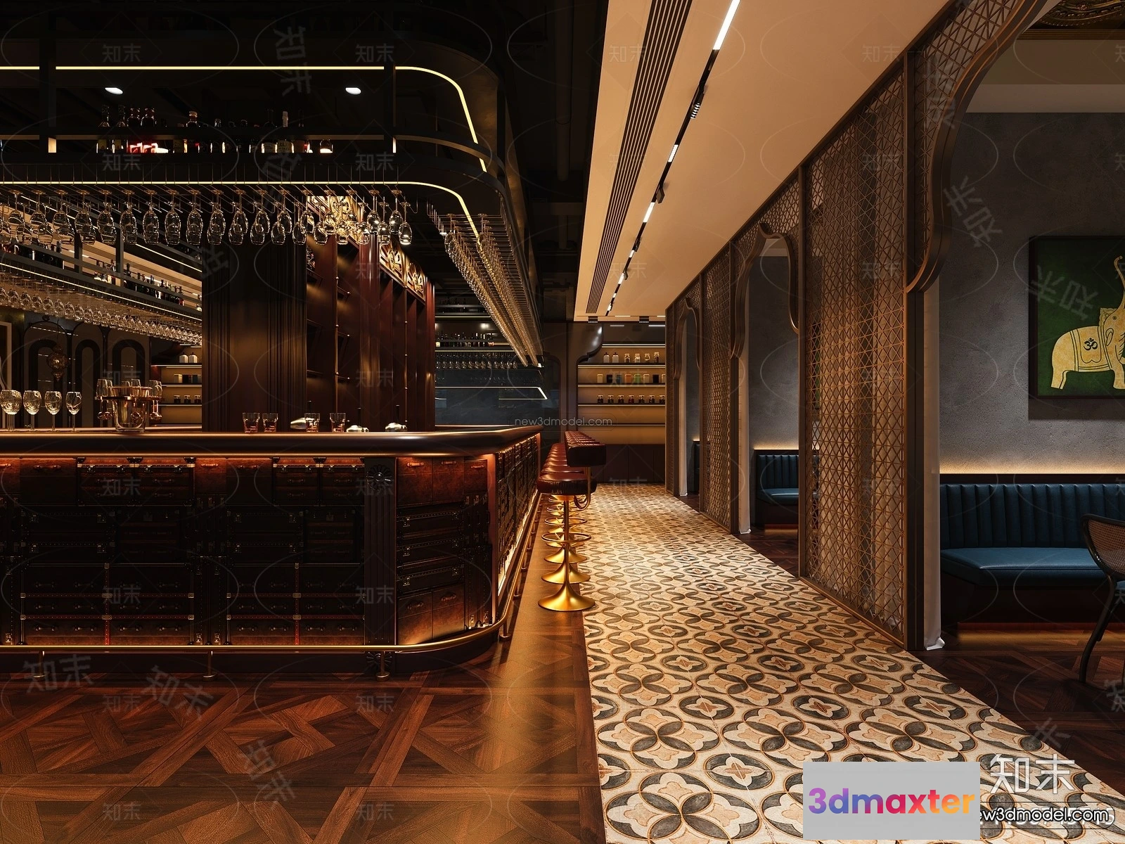 Modern Style Interior 3D Blocks and 3D Models – Asian Restaurant 3D Scene – 981 – Restaurant 3D Model – CORONA