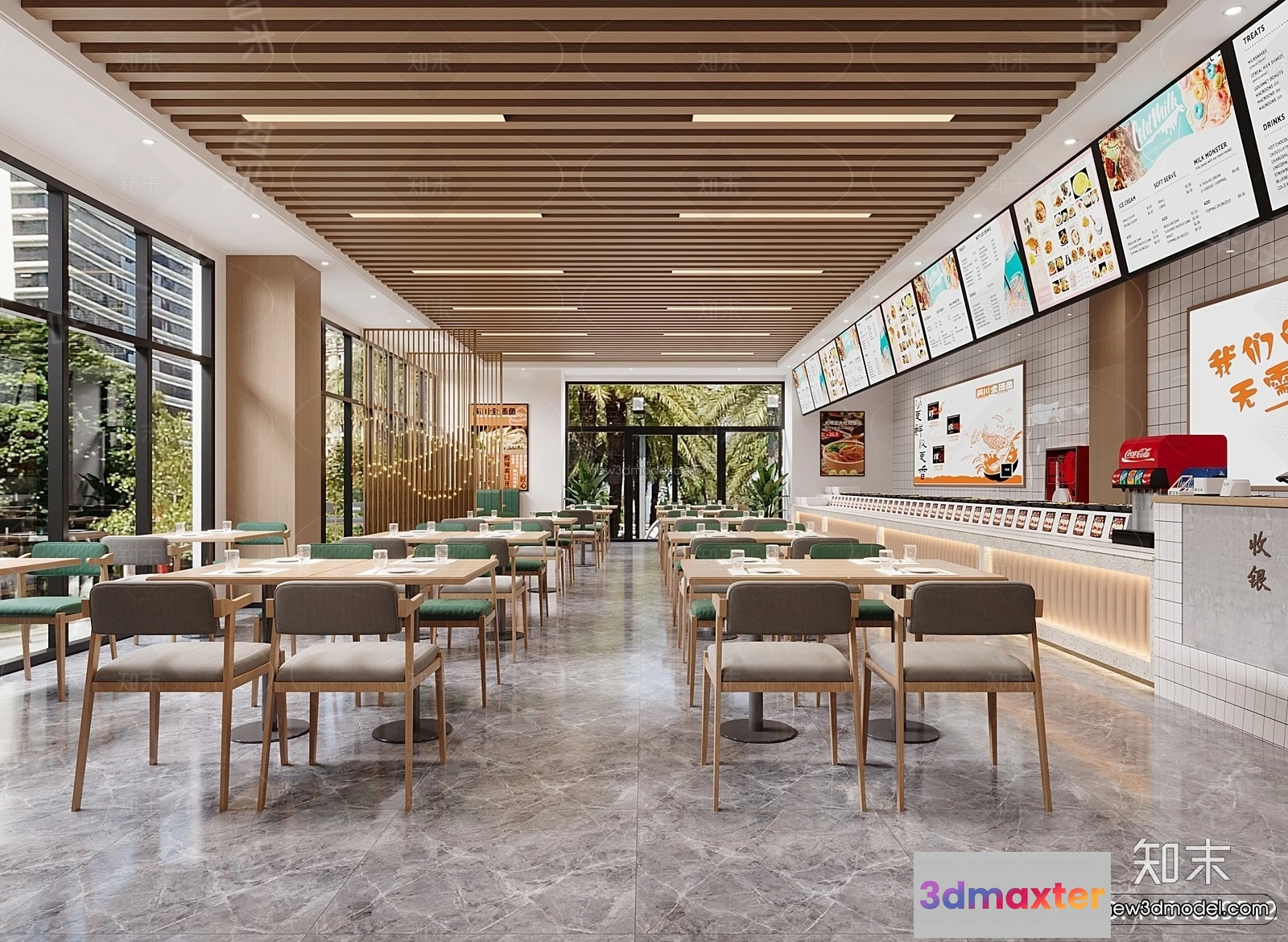 Modern Style Interior 3D Blocks and 3D Models – Asian Restaurant 3D Scene – 989 – Restaurant 3D Model – CORONA