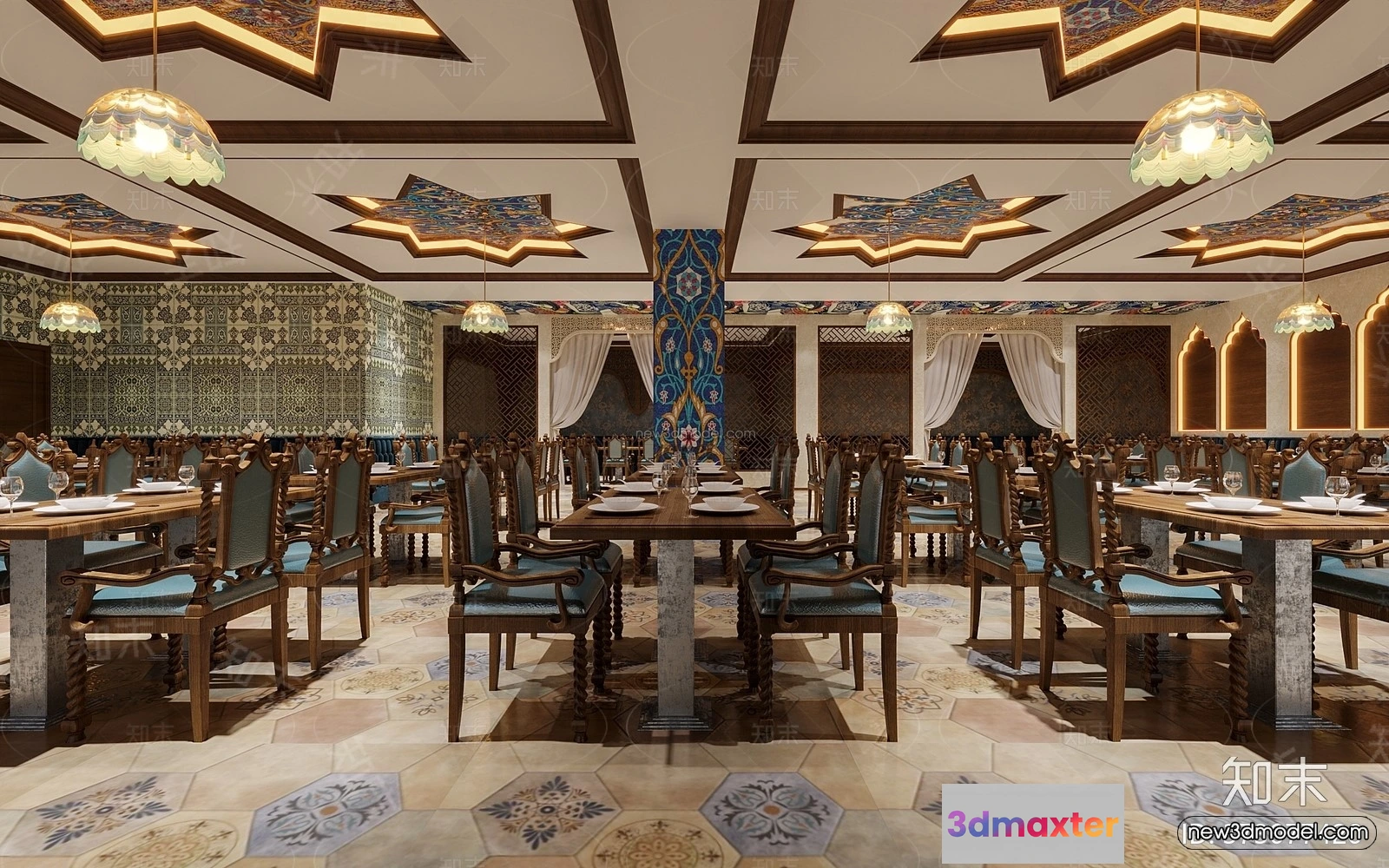 3D Models / 3D Scenes / Interior / Commercial Spaces / Modern Style Interior 3D Blocks and 3D Models – Asian Restaurant 3D Scene – 992 3D Max
