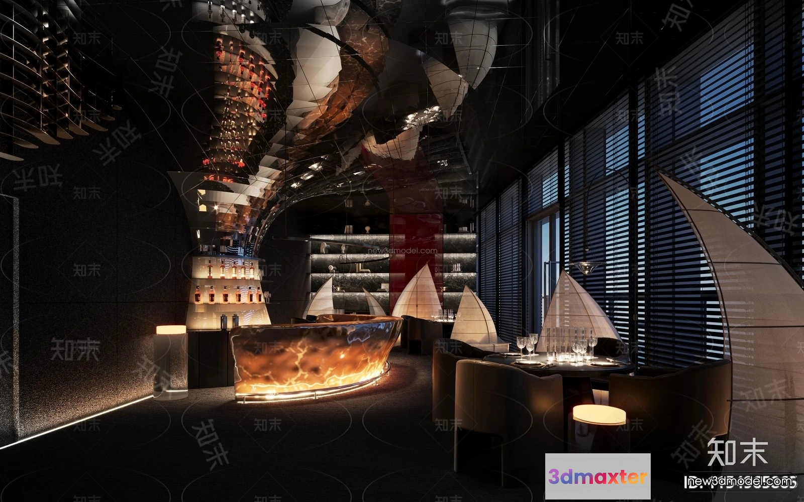 3D Models / 3D Scenes / Interior / Commercial Spaces / Modern Style Interior 3D Blocks and 3D Models – Bar 3D Scene – 726 3D Max