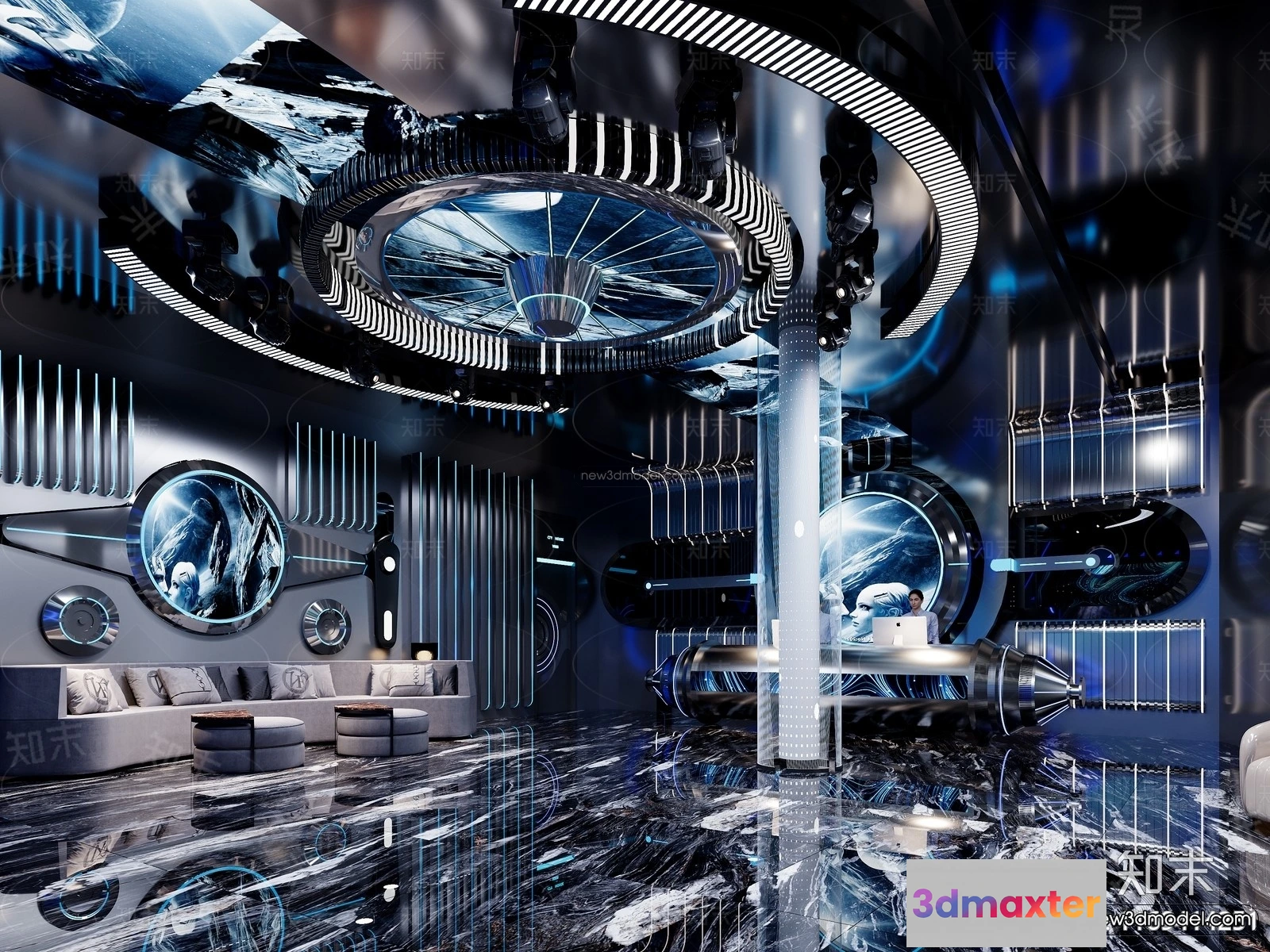 3D Models / 3D Scenes / Interior / Commercial Spaces / Modern Style Interior 3D Blocks and 3D Models – Bar 3D Scene – 728 3D Max