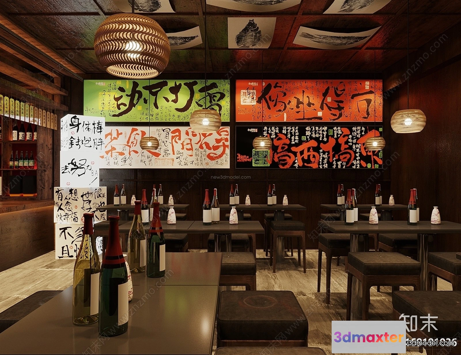 3D Models / 3D Scenes / Interior / Commercial Spaces / Modern Style Interior 3D Blocks and 3D Models – Bar 3D Scene – 729 3D Max