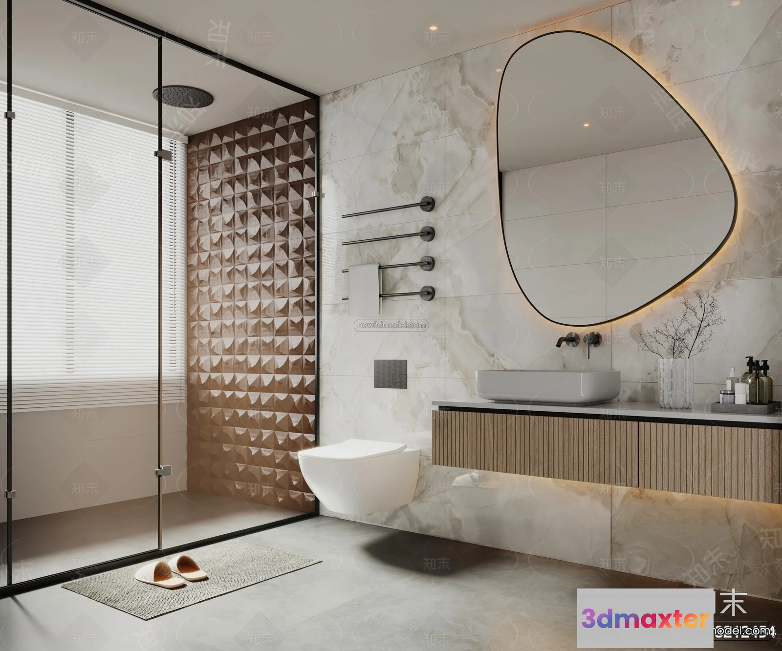 Modern Style Interior 3D Blocks and 3D Models – Bathroom 3D Scene – 641 – Bathroom 3D Model – CORONA