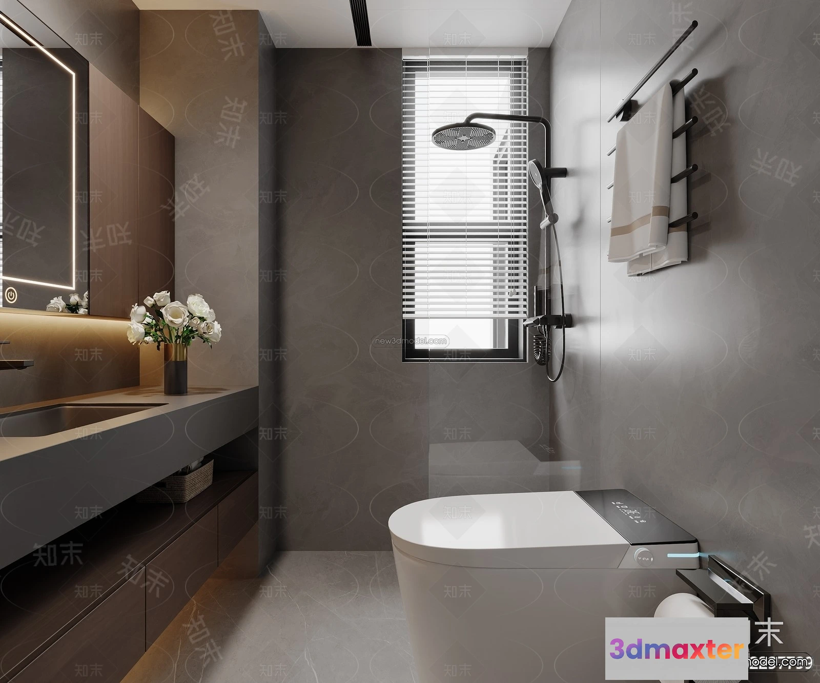 3D Models / 3D Scenes / Interior / Bathroom / Modern Style Interior 3D Blocks and 3D Models – Bathroom 3D Scene – 646 3D Max