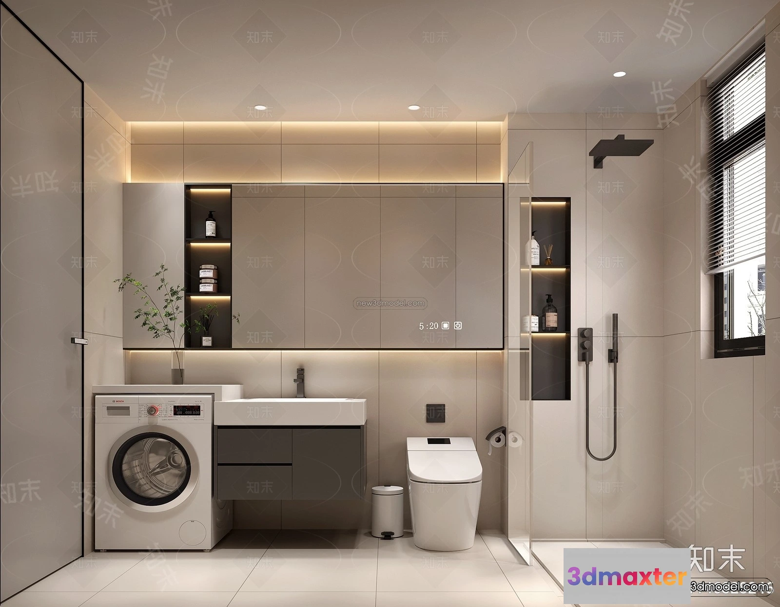 3D Models / 3D Scenes / Interior / Bathroom / Modern Style Interior 3D Blocks and 3D Models – Bathroom 3D Scene – 655 3D Max