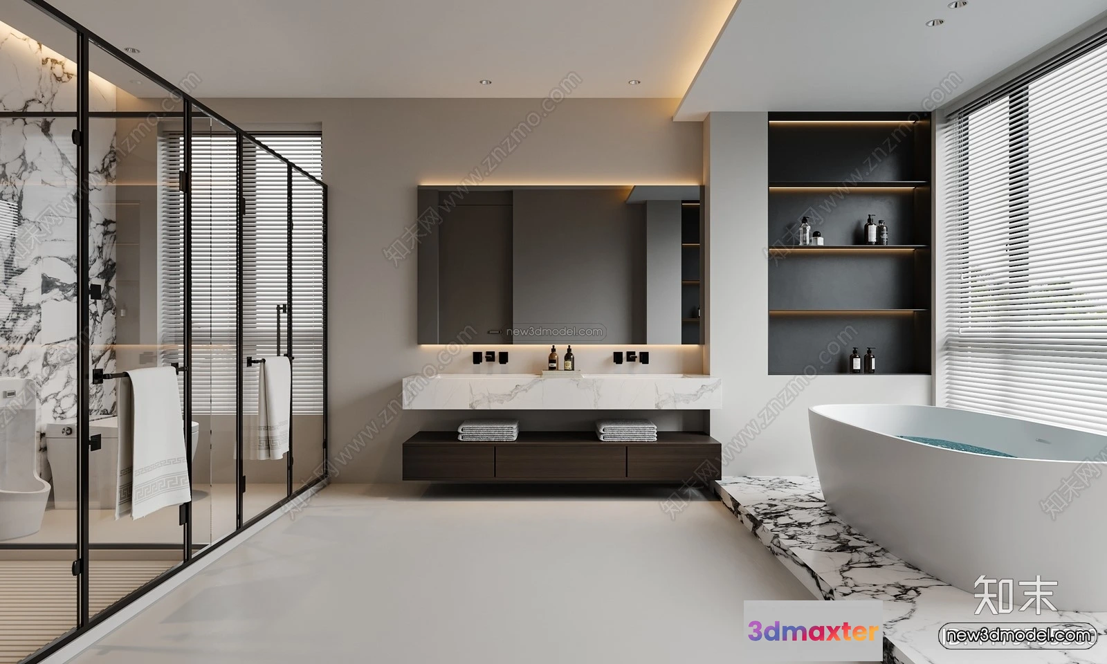 3D Models / 3D Scenes / Interior / Bathroom / Modern Style Interior 3D Blocks and 3D Models – Bathroom 3D Scene – 658 3D Max