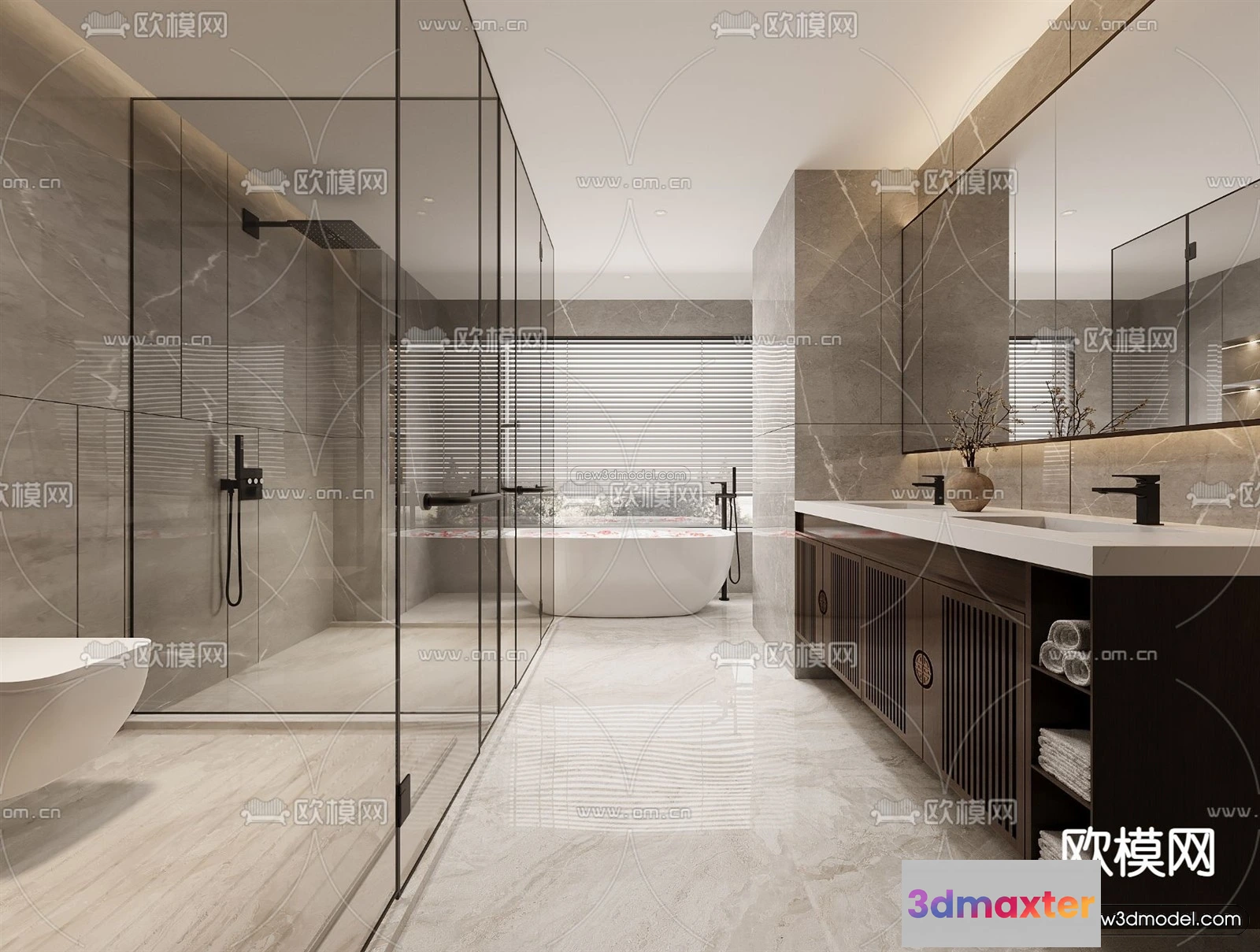 3D Models / 3D Scenes / Interior / Bathroom / Modern Style Interior 3D Blocks and 3D Models – Bathroom 3D Scene – 664 3D Max