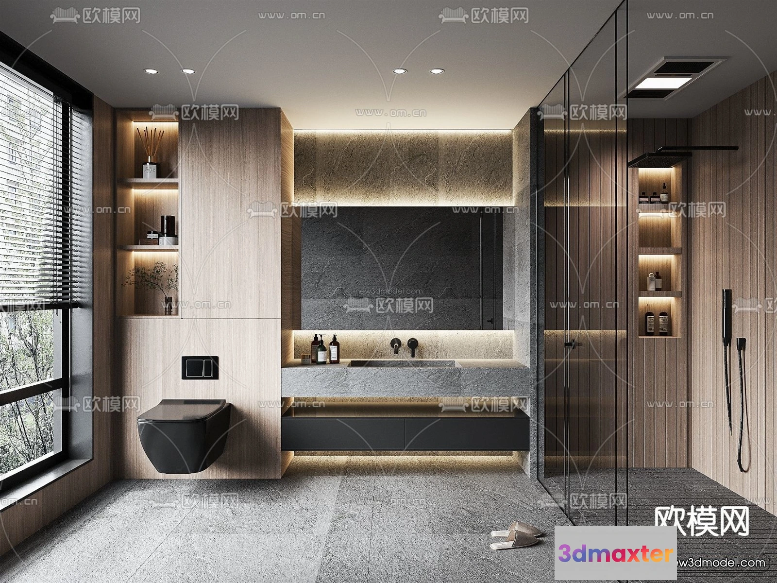 3D Models / 3D Scenes / Interior / Bathroom / Modern Style Interior 3D Blocks and 3D Models – Bathroom 3D Scene – 669 3D Max
