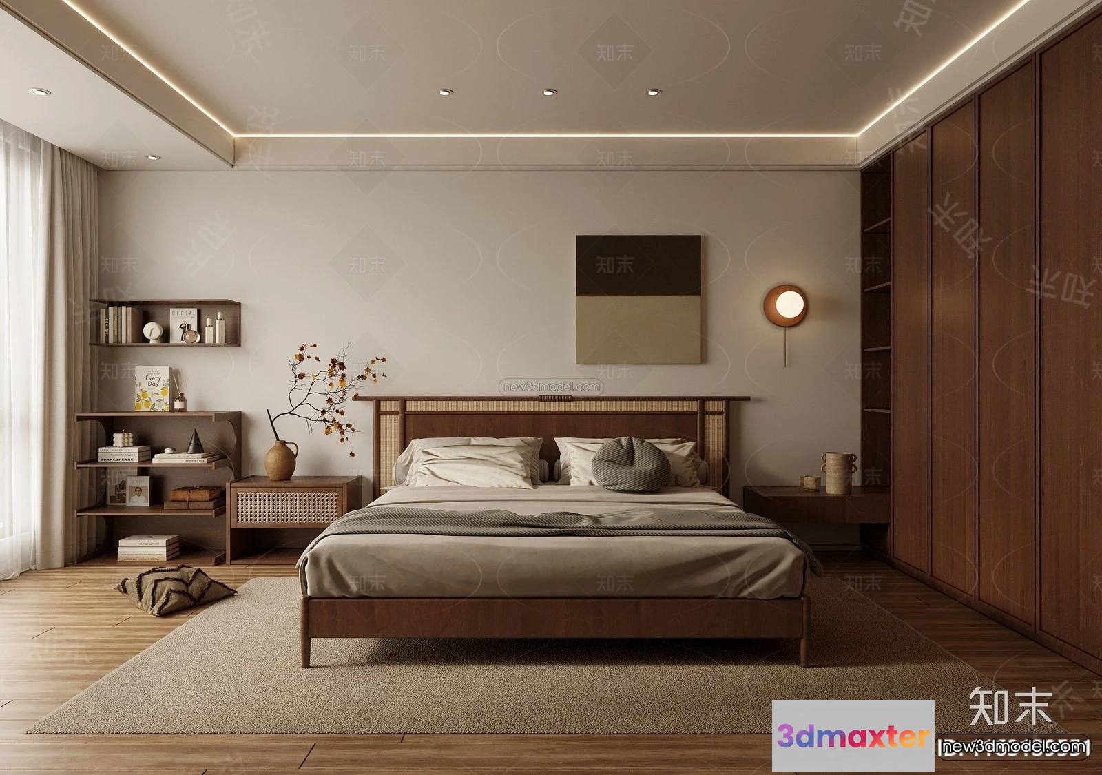 Modern Style Interior 3D Blocks and 3D Models – Bedroom 3D Scene – 454 – Bedroom 3D Model – CORONA