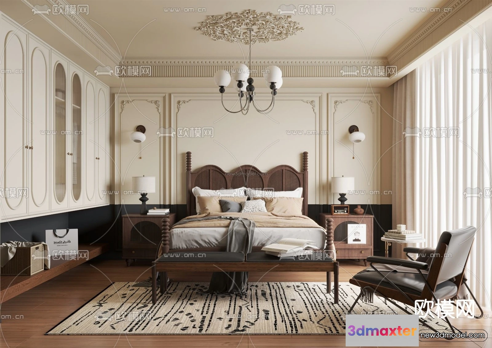 Modern Style Interior 3D Blocks and 3D Models – Bedroom 3D Scene – 456 – Bedroom 3D Model – CORONA