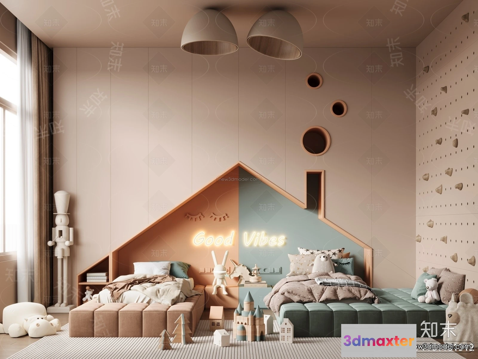 Modern Style Interior 3D Blocks and 3D Models – Bedroom 3D Scene – 468 – Bedroom 3D Model – CORONA