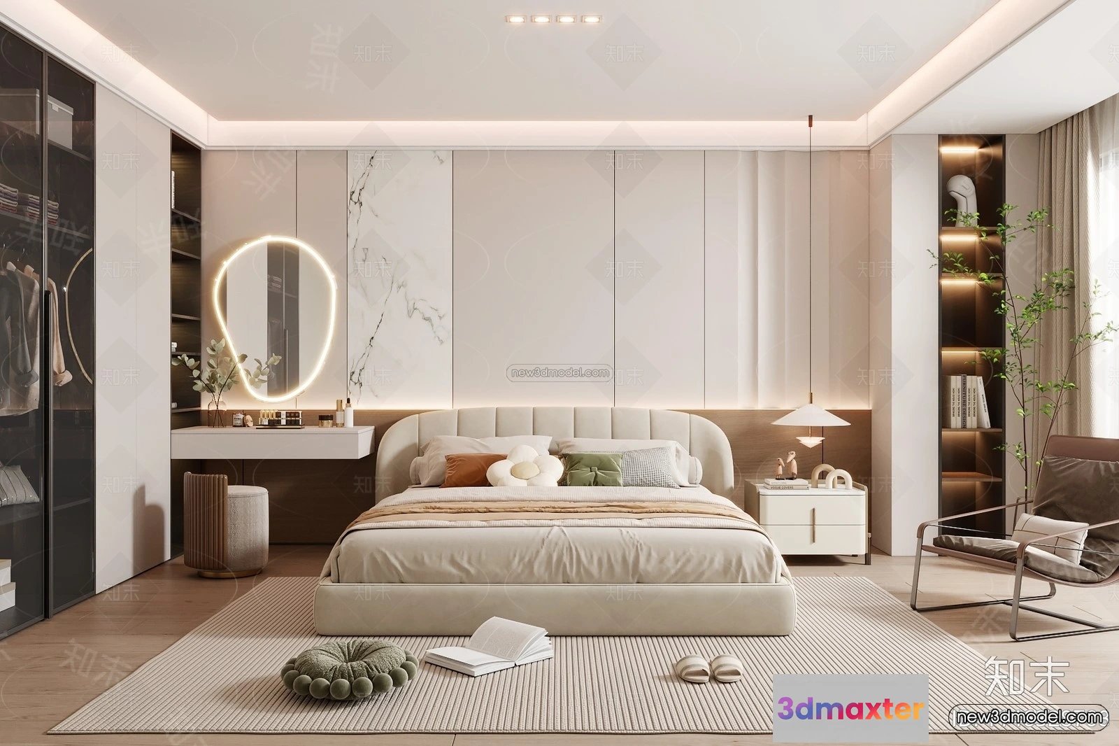 3D Models / 3D Scenes / Interior / Bedroom / Modern Style Interior 3D Blocks and 3D Models – Bedroom 3D Scene – 475 3D Max