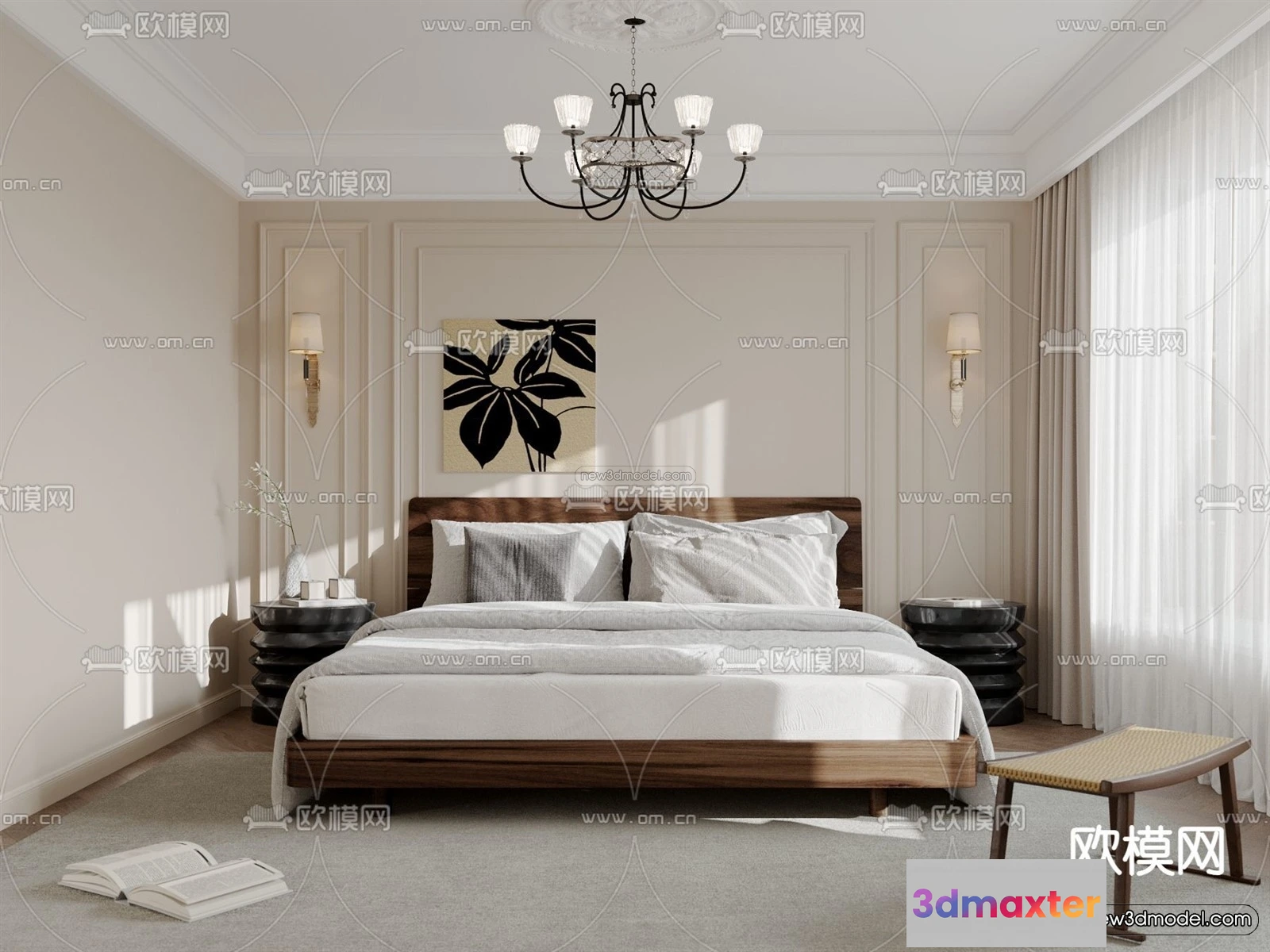 Modern Style Interior 3D Blocks and 3D Models – Bedroom 3D Scene – 481 – Bedroom 3D Model – CORONA