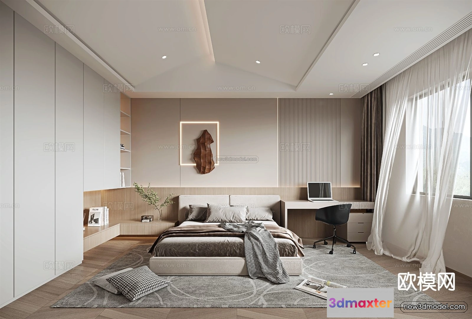 Modern Style Interior 3D Blocks and 3D Models – Bedroom 3D Scene – 485 – Bedroom 3D Model – CORONA
