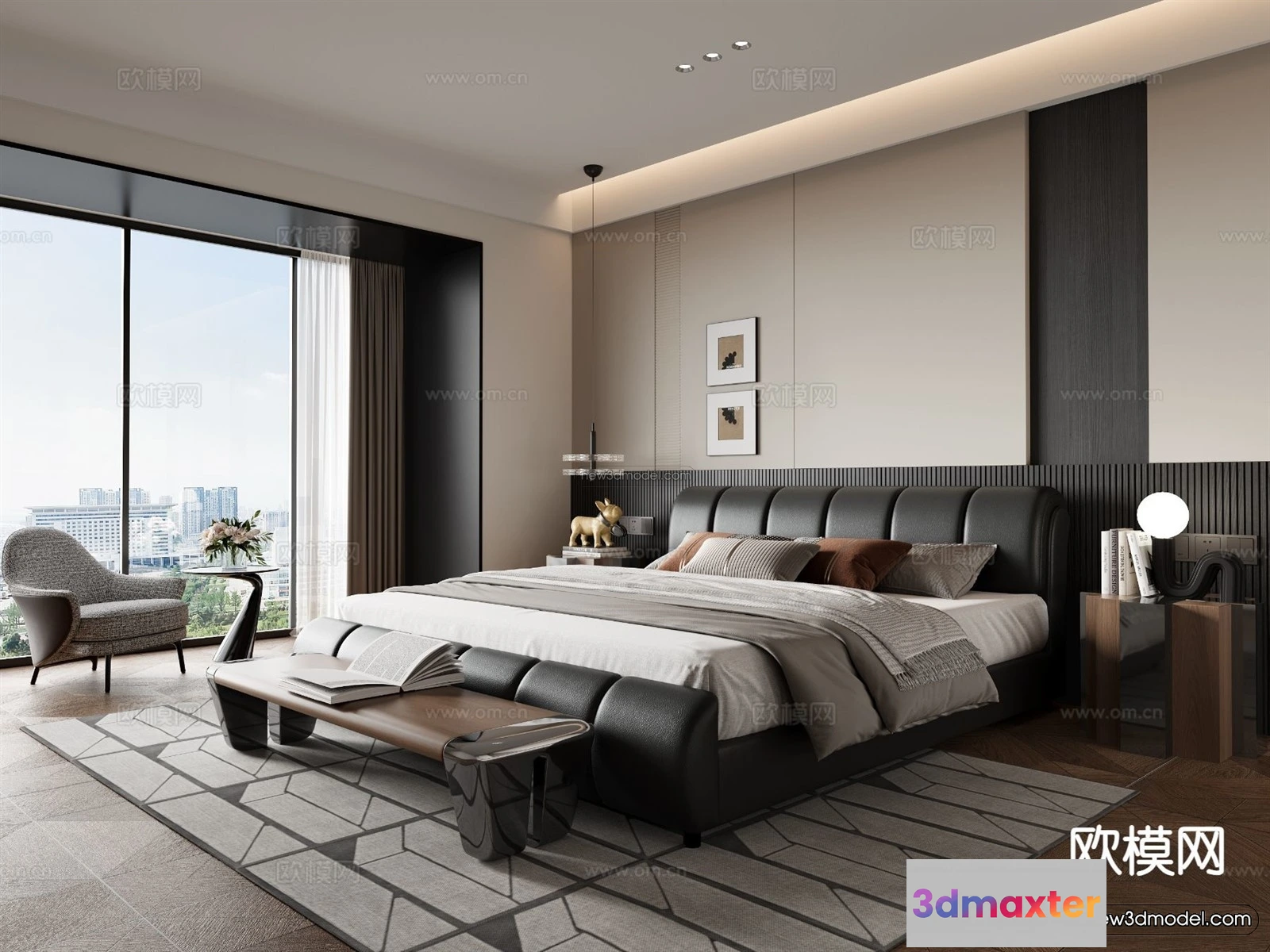 Modern Style Interior 3D Blocks and 3D Models – Bedroom 3D Scene – 494 – Bedroom 3D Model – CORONA