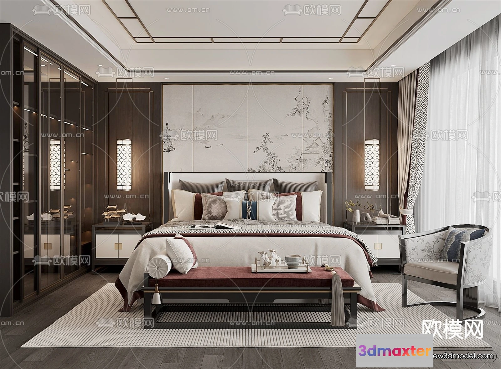 3D Models / 3D Scenes / Interior / Bedroom / Modern Style Interior 3D Blocks and 3D Models – Bedroom 3D Scene – 502 3D Max