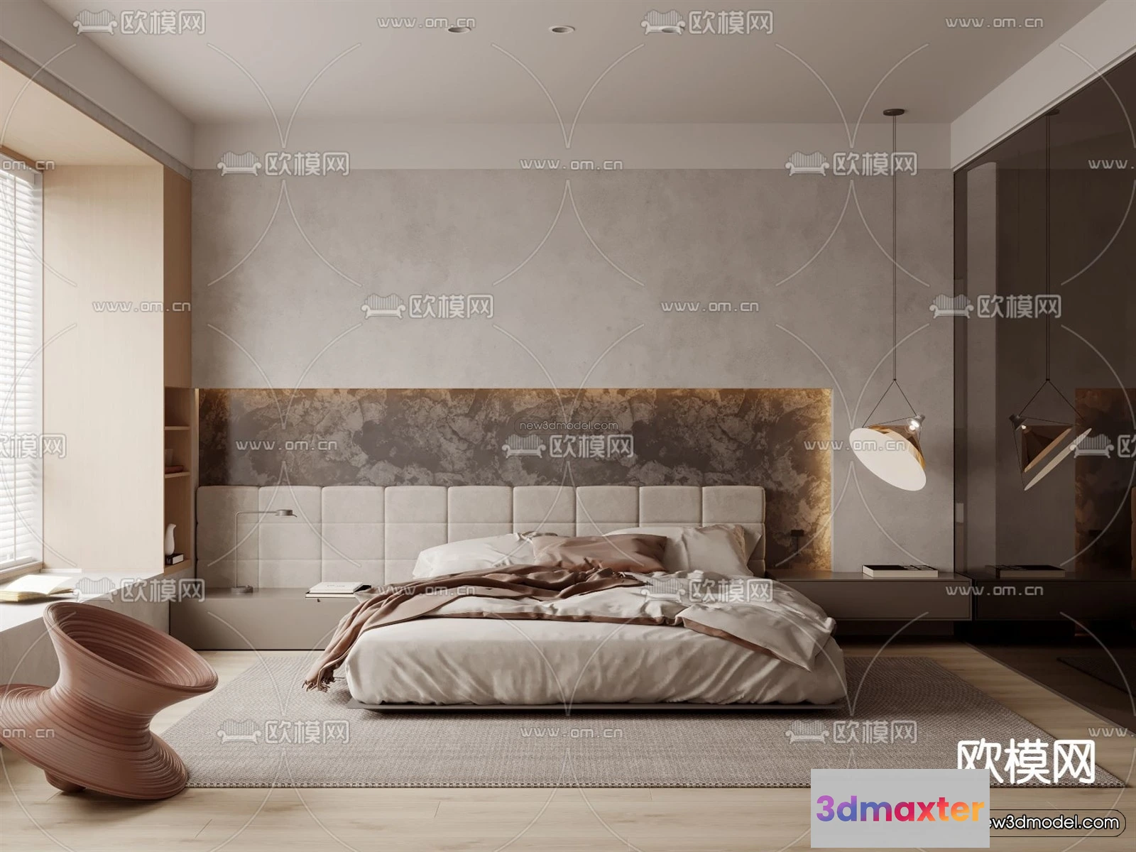 3D Models / 3D Scenes / Interior / Bedroom / Modern Style Interior 3D Blocks and 3D Models – Bedroom 3D Scene – 509 3D Max