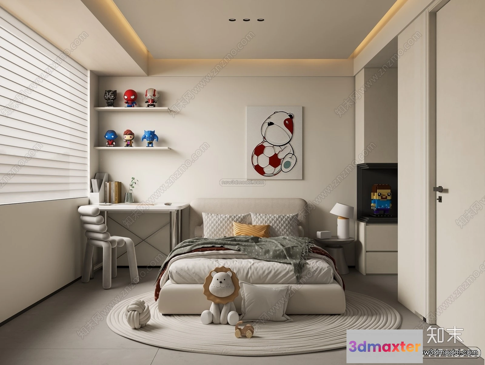 Modern Style Interior 3D Blocks and 3D Models – Bedroom 3D Scene – 523 – Bedroom 3D Model – CORONA