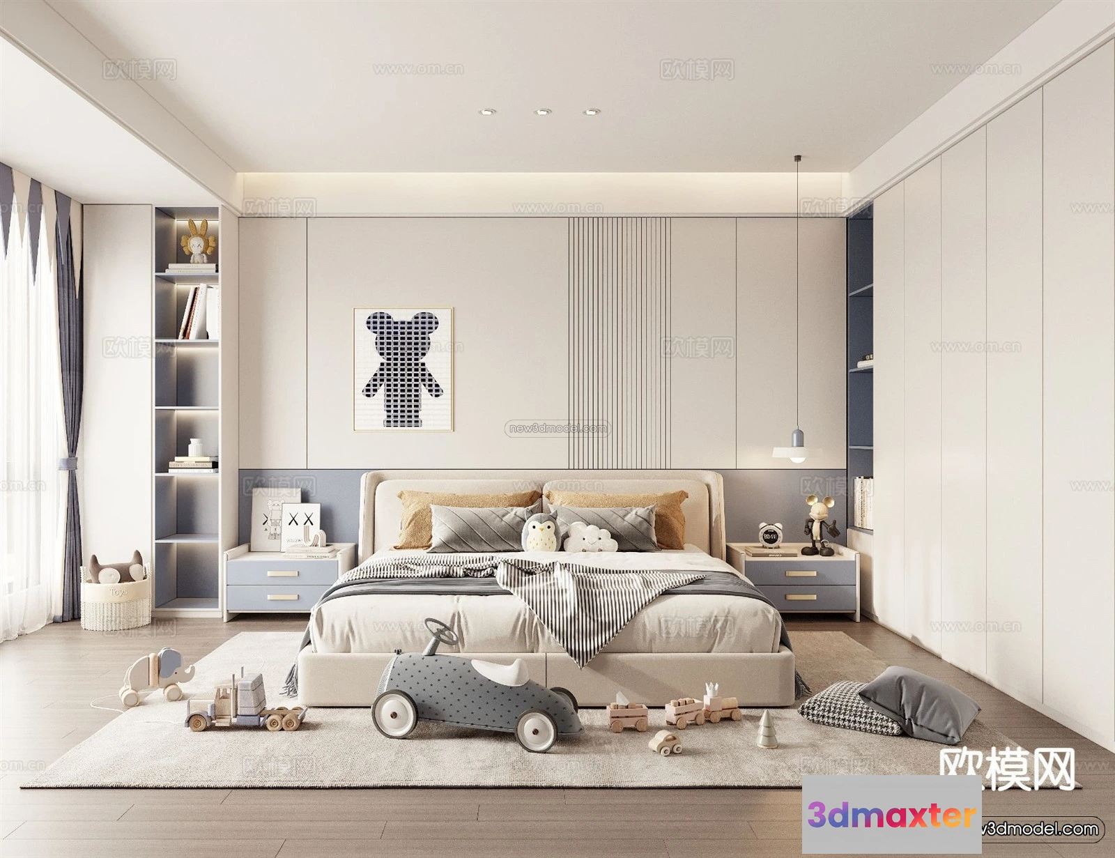 Modern Style Interior 3D Blocks and 3D Models – Bedroom 3D Scene – 526 – Bedroom 3D Model – CORONA