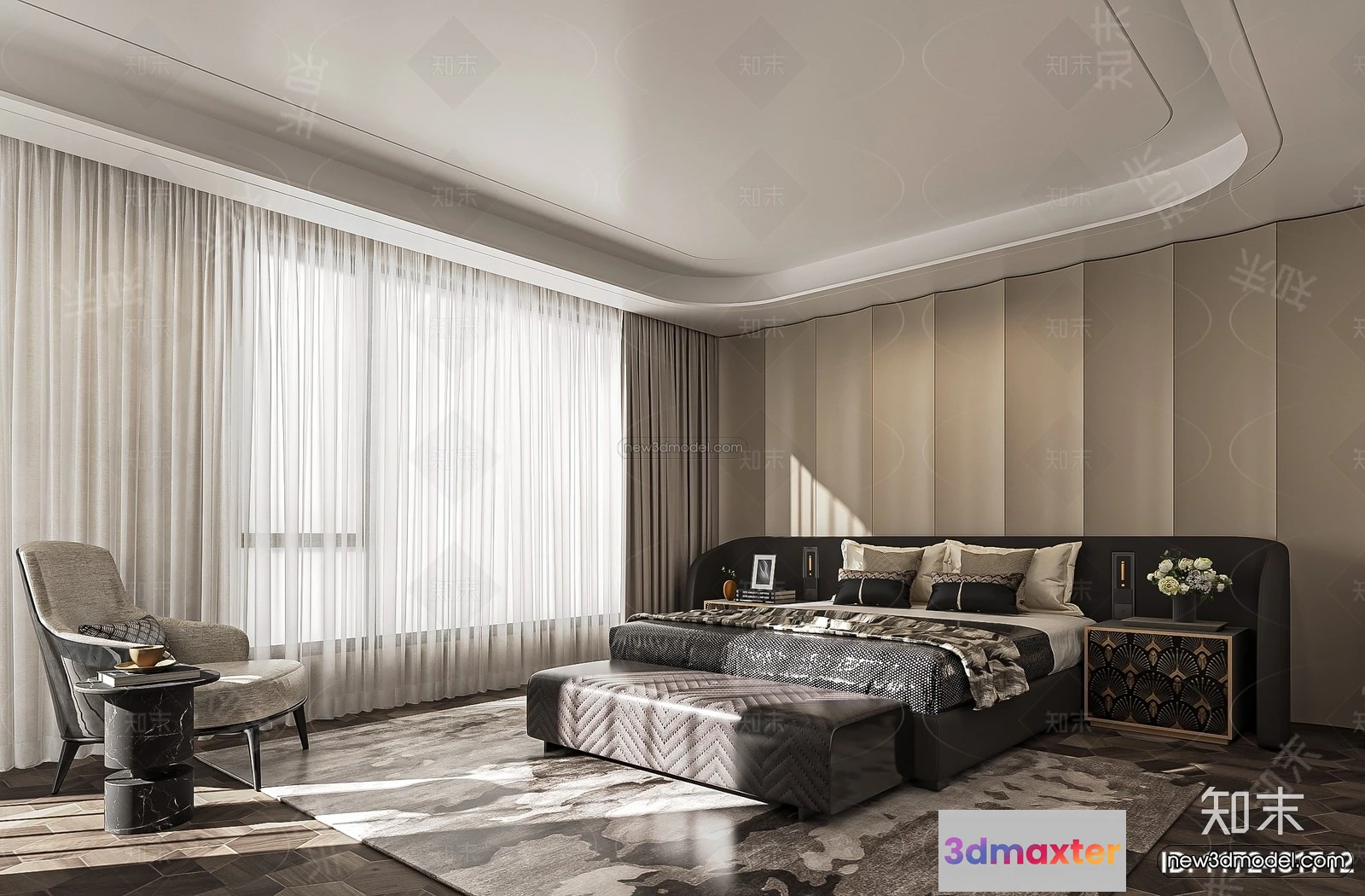 3D Models / 3D Scenes / Interior / Bedroom / Modern Style Interior 3D Blocks and 3D Models – Bedroom 3D Scene – 552 3D Max