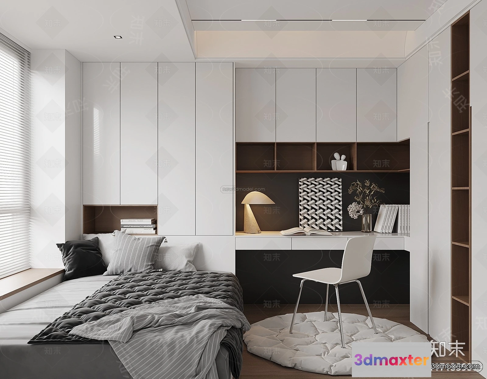 3D Models / 3D Scenes / Interior / Bedroom / Modern Style Interior 3D Blocks and 3D Models – Bedroom 3D Scene – 555 3D Max