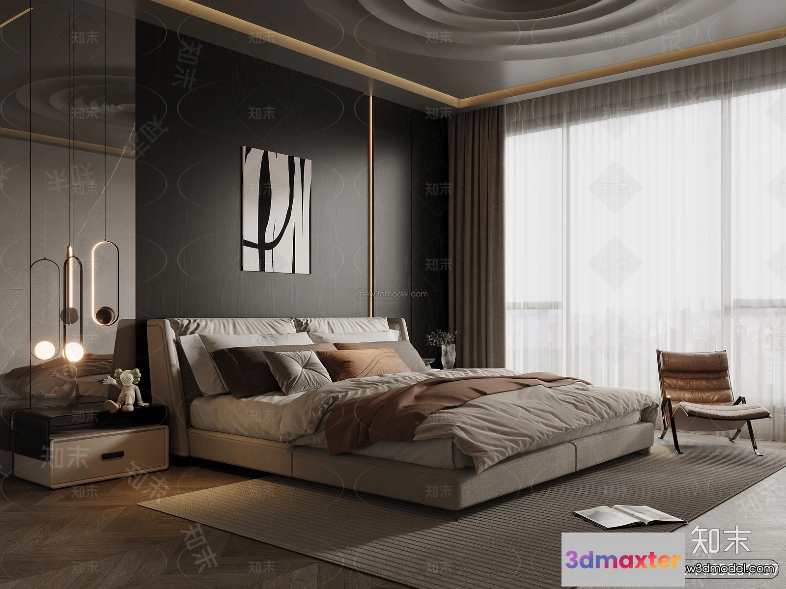 Modern Style Interior 3D Blocks and 3D Models – Bedroom 3D Scene – 569 – Bedroom 3D Model – CORONA