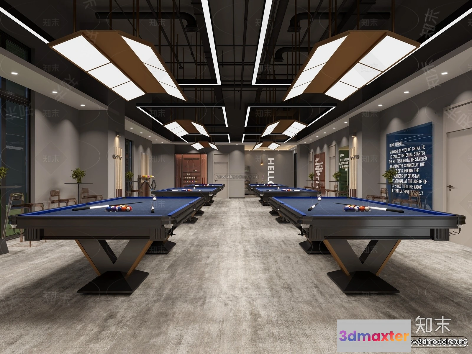 3D Models / 3D Scenes / Interior / Commercial Spaces / Modern Style Interior 3D Blocks and 3D Models – Billard 3D Scene – 775 3D Max