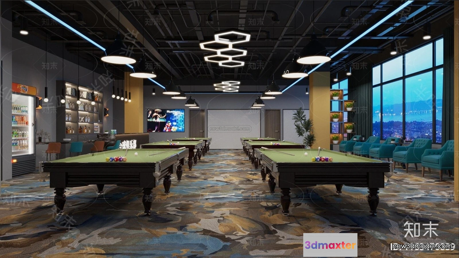 3D Models / 3D Scenes / Interior / Commercial Spaces / Modern Style Interior 3D Blocks and 3D Models – Billard 3D Scene – 795 3D Max