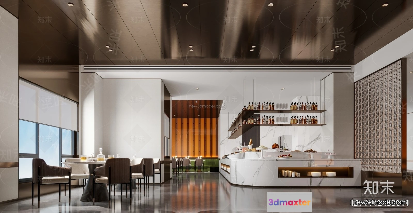 Modern Style Interior 3D Blocks and 3D Models – Buffet Restaurant 3D Scene – 800 – Hotel 3D Model – CORONA