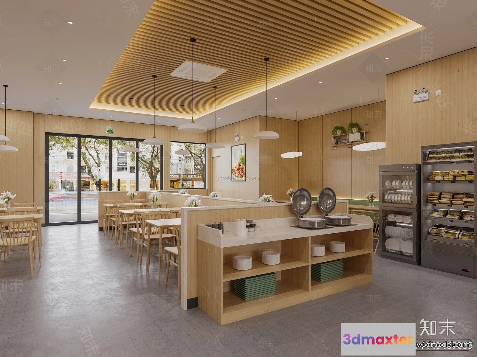 3D Models / 3D Scenes / Interior / Commercial Spaces / Modern Style Interior 3D Blocks and 3D Models – Buffet Restaurant 3D Scene – 803 3D Max