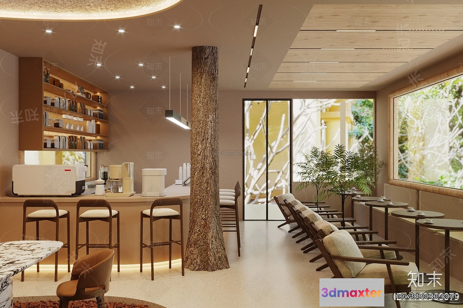 3D Models / 3D Scenes / Interior / Commercial Spaces / Modern Style Interior 3D Blocks and 3D Models – Coffee Shop 3D Scene – 815 3D Max
