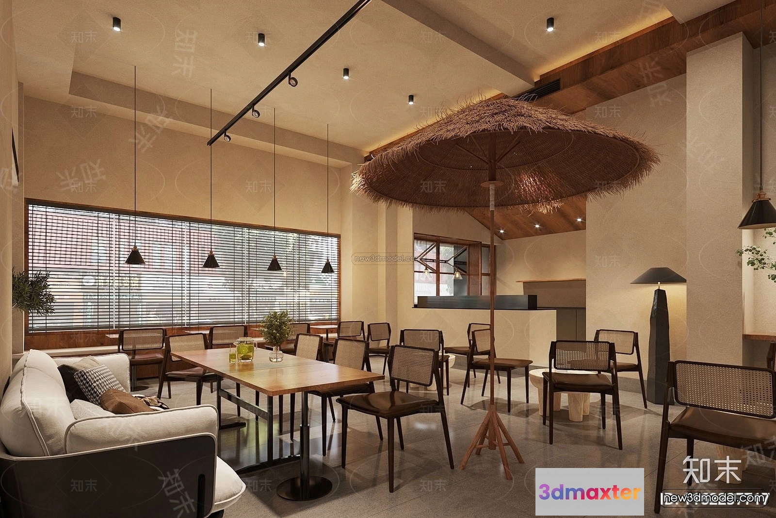 3D Models / 3D Scenes / Interior / Commercial Spaces / Modern Style Interior 3D Blocks and 3D Models – Coffee Shop 3D Scene – 817 3D Max