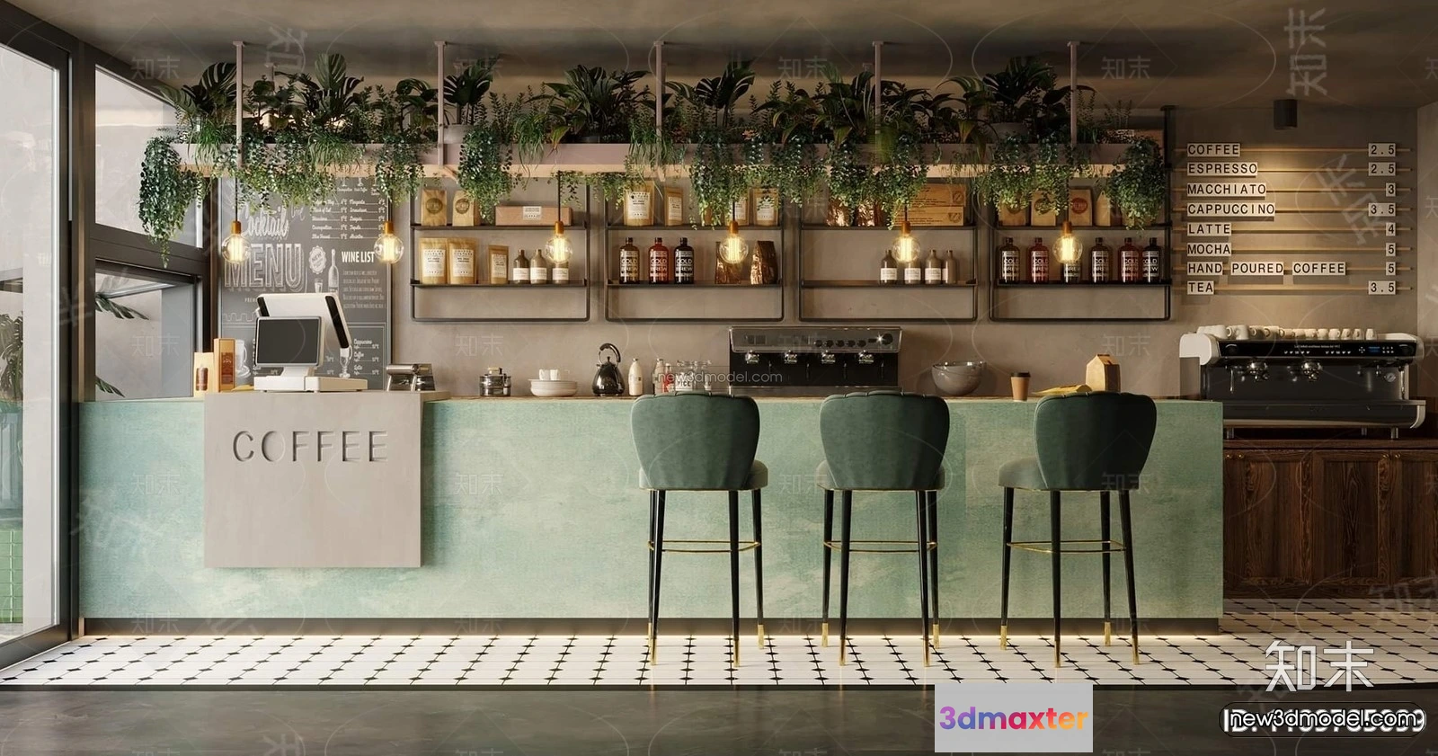 3D Models / 3D Scenes / Interior / Commercial Spaces / Modern Style Interior 3D Blocks and 3D Models – Coffee Shop 3D Scene – 823 3D Max