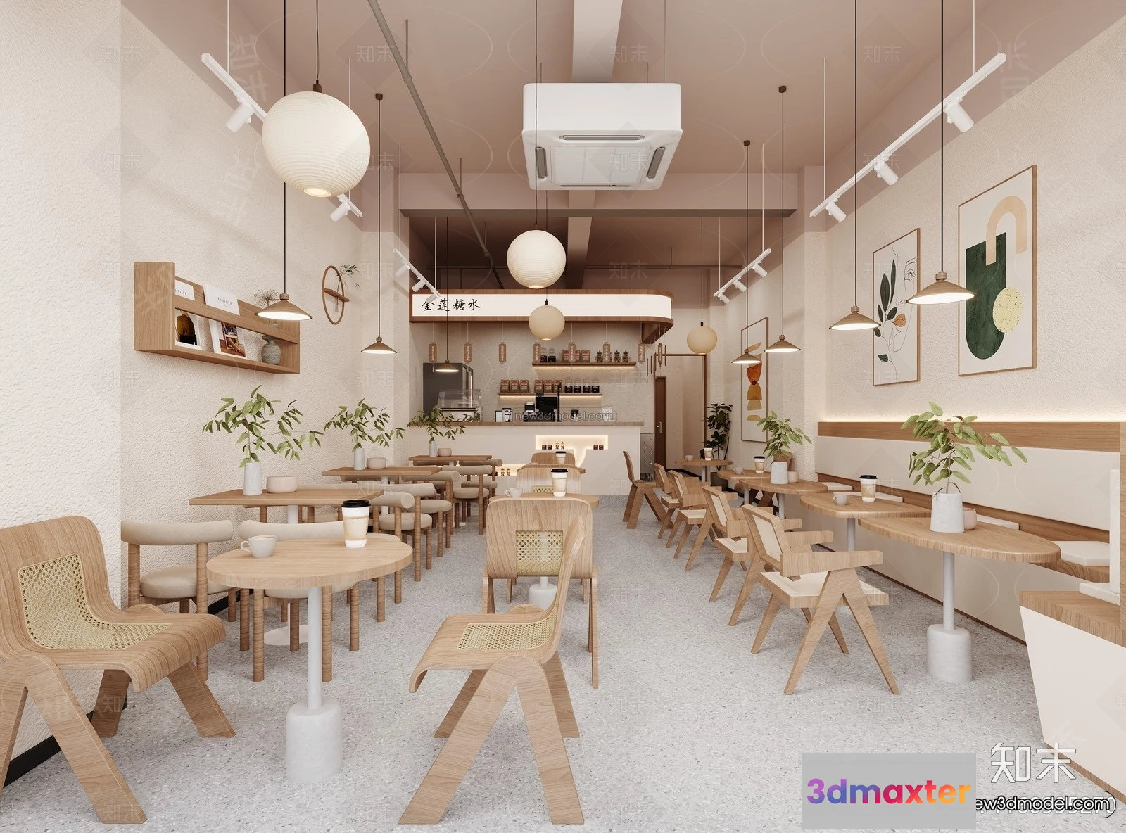 3D Models / 3D Scenes / Interior / Commercial Spaces / Modern Style Interior 3D Blocks and 3D Models – Coffee Shop 3D Scene – 826 3D Max