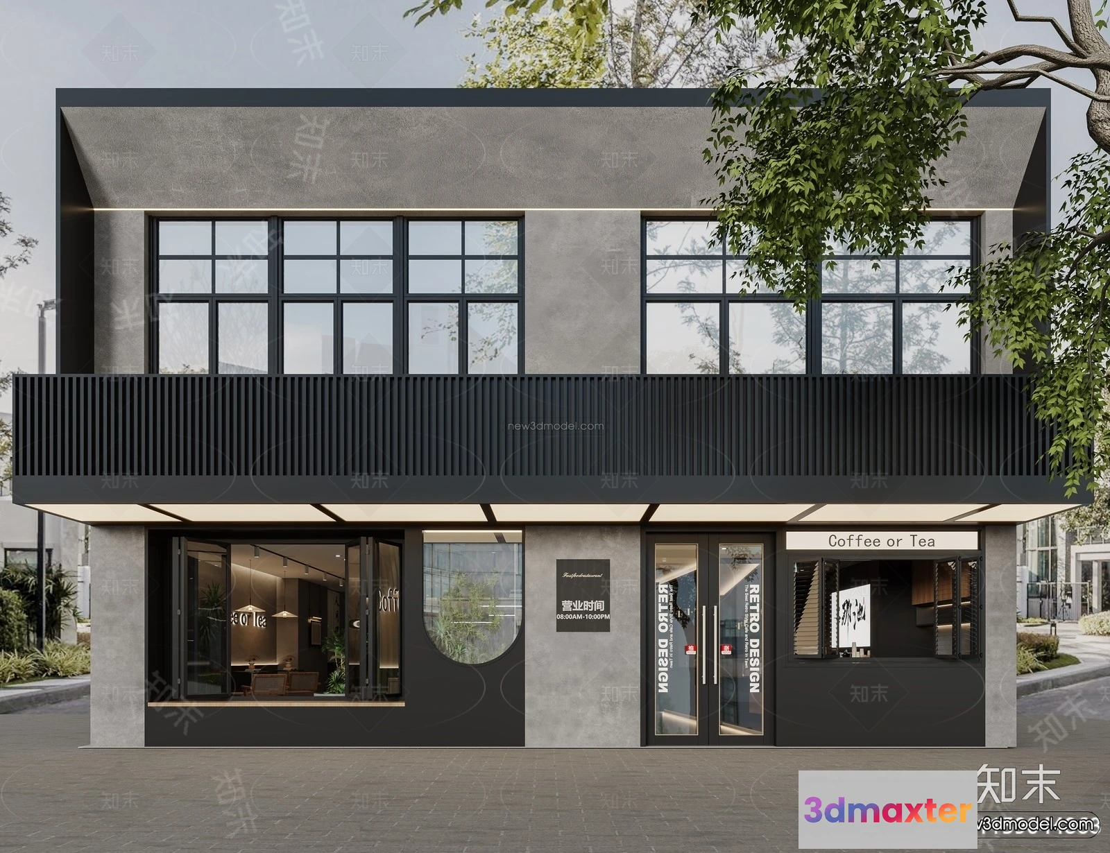 3D Models / 3D Scenes / Interior / Commercial Spaces / Modern Style Interior 3D Blocks and 3D Models – Coffee Shop 3D Scene – 843 3D Max