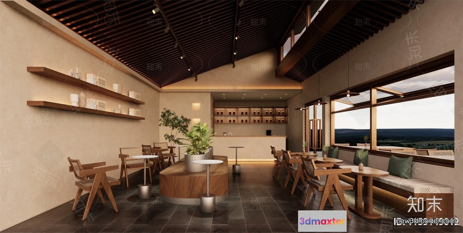 3D Models / 3D Scenes / Interior / Commercial Spaces / Modern Style Interior 3D Blocks and 3D Models – Coffee Shop 3D Scene – 850 3D Max