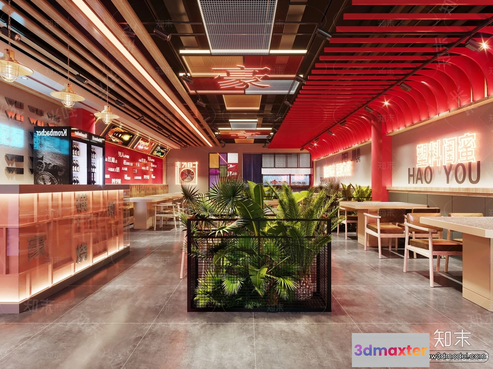 Modern Style Interior 3D Blocks and 3D Models – Coffee Shop 3D Scene – 853 – Restaurant 3D Model – CORONA