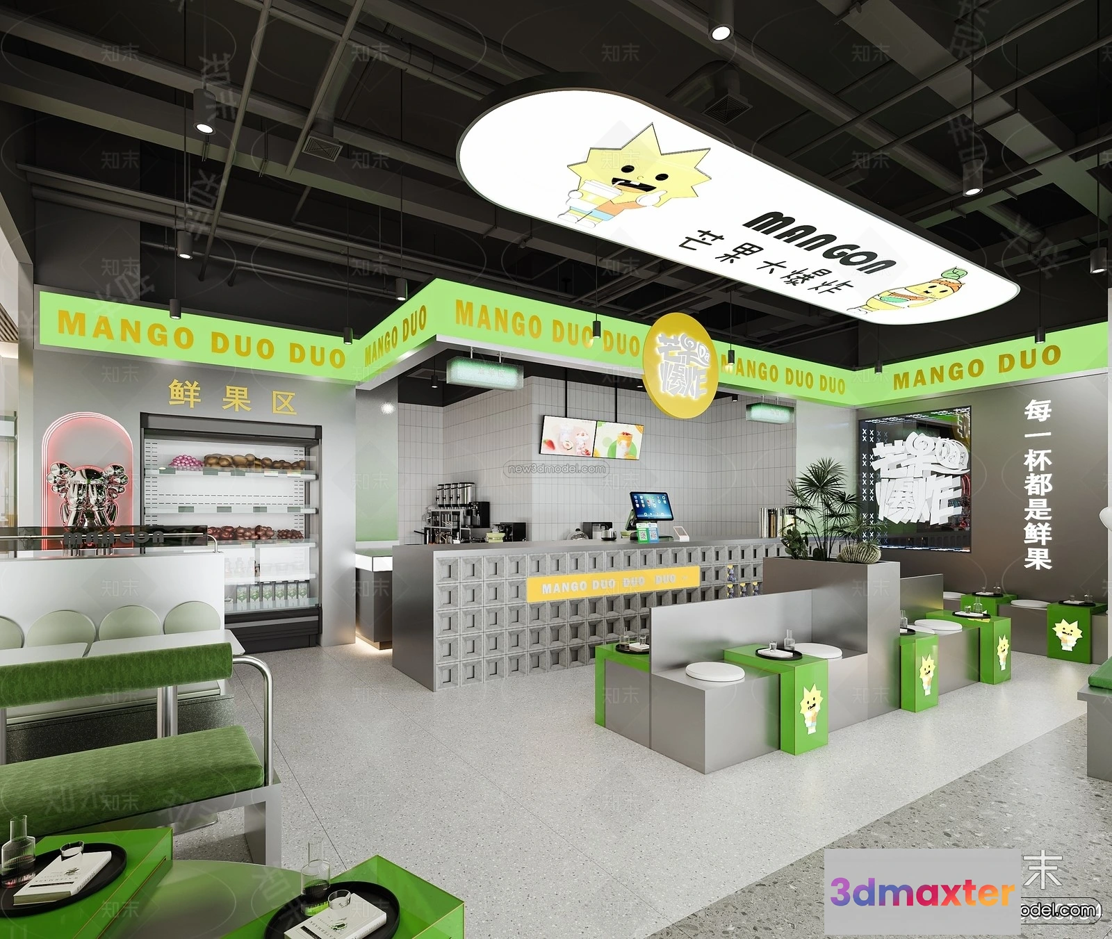 3D Models / 3D Scenes / Interior / Commercial Spaces / Modern Style Interior 3D Blocks and 3D Models – Coffee Shop 3D Scene – 855 3D Max